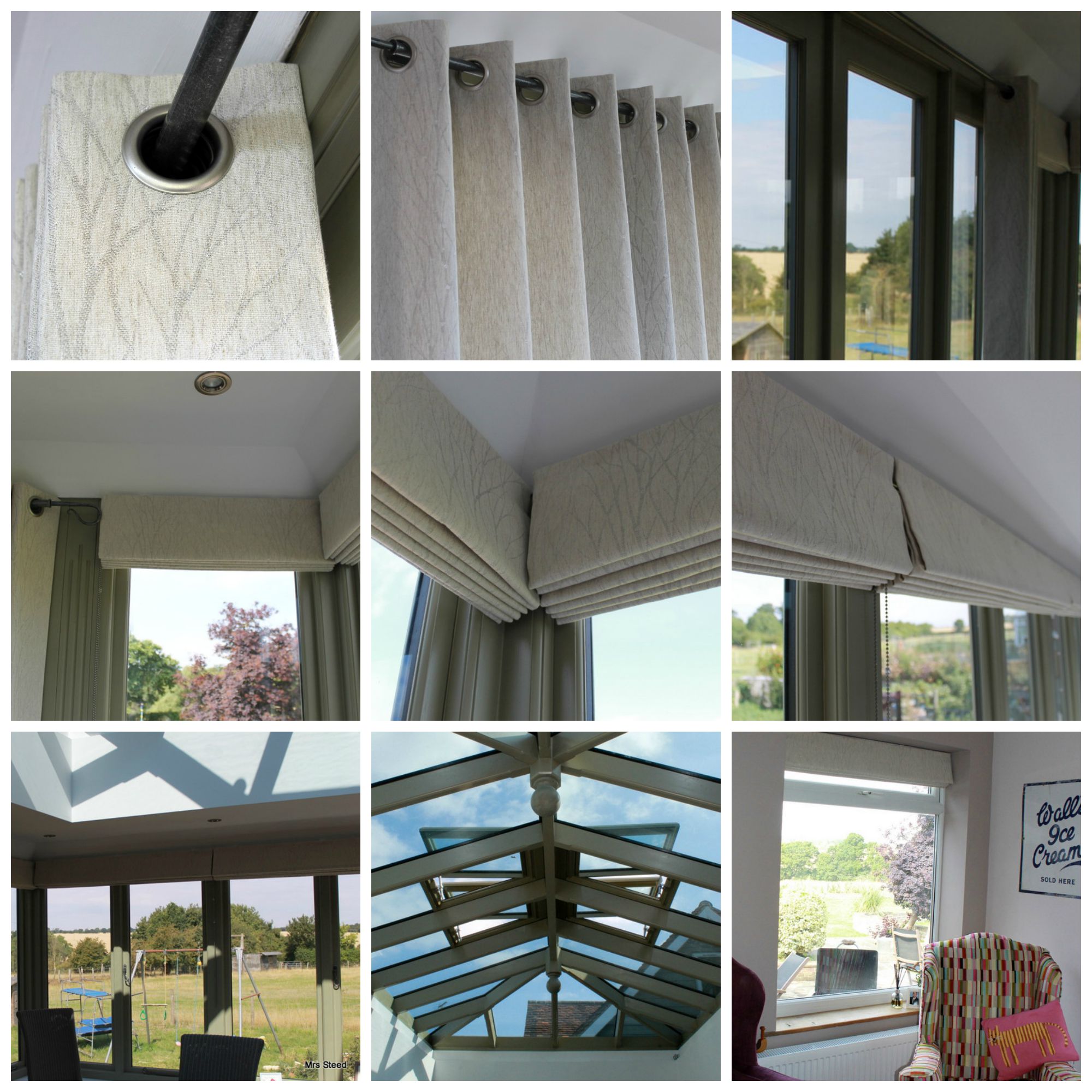 I recently had the pleasure of making a large number of blinds & a pair of eyelet curtains for a beautiful orangery style dining room/family room which had been expertly built by its owner as an extension to a stunning kitchen. The room, which has lovely countryside views is fully glazed on two sides & also has a huge lantern roof.